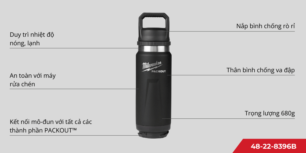 Review Bình Giữ Nhiệt Packout 24Oz (710ml) Milwaukee 48-22-8396B