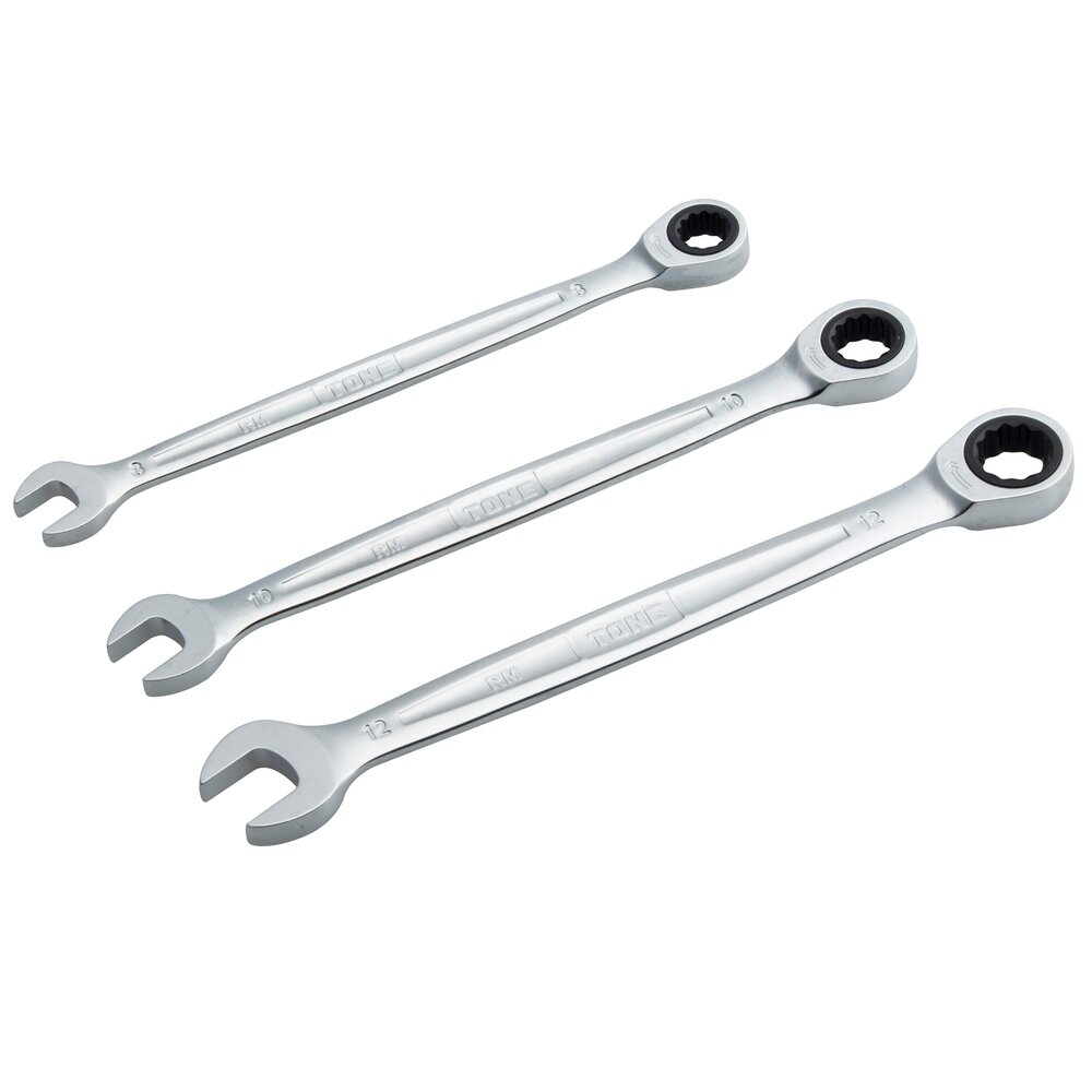Bộ cờ lê cơ cấu ratchet RM300 TONE với thiết kế đầu 12 cạnh chính xác và cơ cấu ratchet giúp thao tác nhanh gọn trong không gian hẹp, bộ 3 chiếc kích thước milimet đáp ứng đa dạng nhu cầu công nghiệp. Bề mặt nhám bóng chống trượt, chất liệu bền bỉ đảm bảo tuổi thọ cao dưới tải trọng khắc nghiệt. Trọng lượng nhẹ 150g, kích thước nhỏ gọn 283x72x20mm giúp dễ dàng mang theo và bảo quản. Là lựa chọn tối ưu cho bảo trì máy móc, sửa chữa ô tô và các ứng dụng MRO chuyên nghiệp.