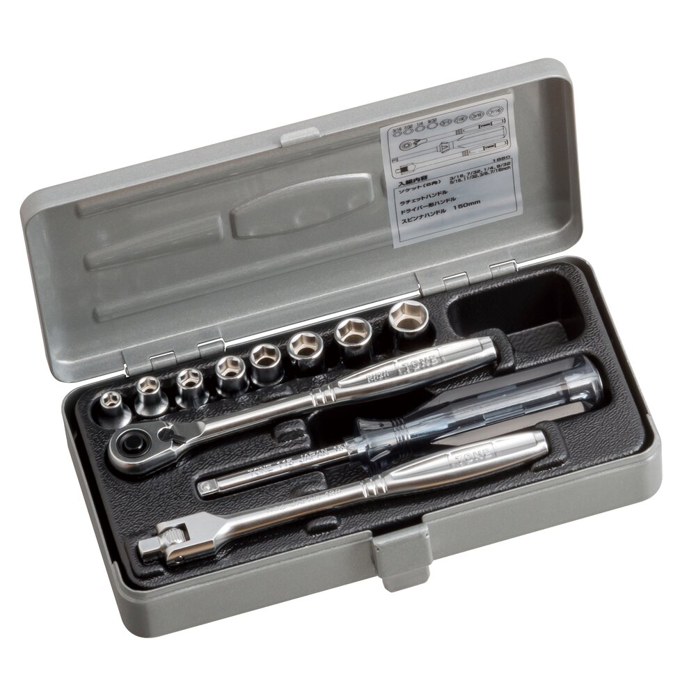 Bộ đầu khẩu 1850 TONE cung cấp giải pháp chuyên nghiệp với 11 đầu khẩu đa dạng, sử dụng góc cắm 1/4 inch tiêu chuẩn và thiết kế đầu lục giác cho độ bám chắc chắn. Chất liệu cao cấp, bền bỉ, chống mài mòn hiệu quả, đảm bảo độ tin cậy trong các tác vụ công nghiệp nặng. Sản phẩm ứng dụng hệ đo lường inch, tương thích rộng rãi với thiết bị, hỗ trợ tối ưu cho công việc bảo trì, lắp ráp trong xưởng cơ khí, sản xuất và ngành ô tô. Thiết kế gọn nhẹ, màu bạc chuyên nghiệp, mang lại hiệu suất và sự tiện lợi vượt trội.