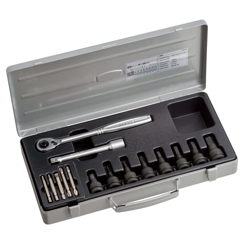 Bộ đầu khẩu AH4133 TONE là giải pháp MRO chuyên nghiệp với 15 chi tiết kết hợp đầu cắm 12.7mm và đầu bit 6.35mm, phù hợp đa dạng ứng dụng siết lục giác hệ mét. Thiết kế từ chất liệu hợp kim bền bỉ, bộ sản phẩm nặng 3.5kg với kích thước gọn 406x213x64mm, mang lại độ bền và hiệu suất cao trong bảo trì công nghiệp, sửa chữa cơ khí và lắp ráp thiết bị, đảm bảo độ chính xác tối ưu cho mọi tác vụ.