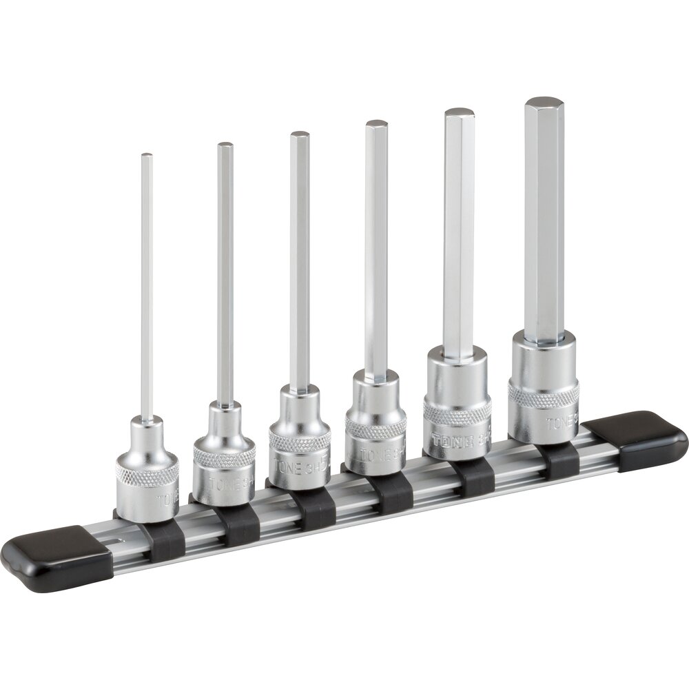 Bộ đầu khẩu lục giác dài HH306L TONE gồm 6 đầu, sử dụng góc cắm 9.5mm (3/8 inch) và hệ đo lường milimet.