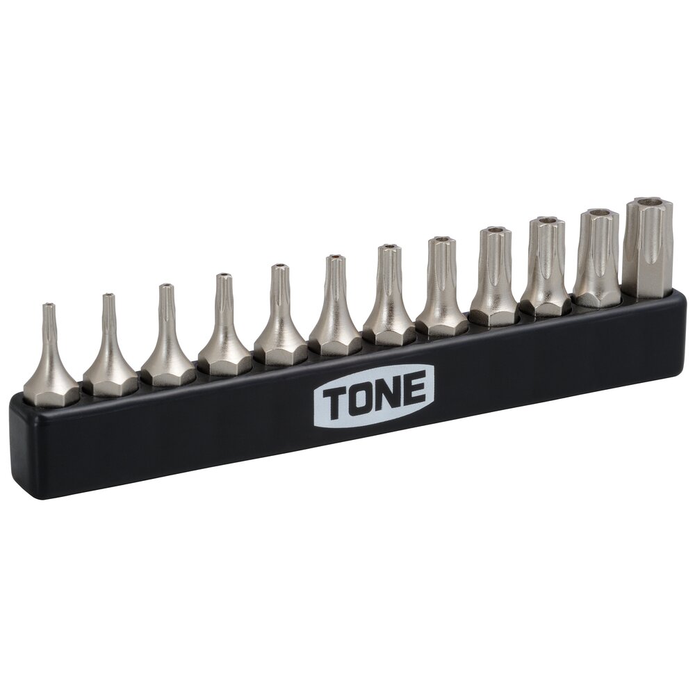 Bộ đầu vặn hoa thị BTTH12S TONE là bộ 12 đầu vặn Torx hình T dùng đầu cắm bit 6.35mm (DIN3126 ISO1173 Bit ngắn), phù hợp cho kỹ sư bảo trì nhà máy KCN và thợ cơ khí xưởng. Sản phẩm có khối lượng đơn lẻ 65g, kích thước 64.5x81x25mm, thiết kế chống giả mạo.
