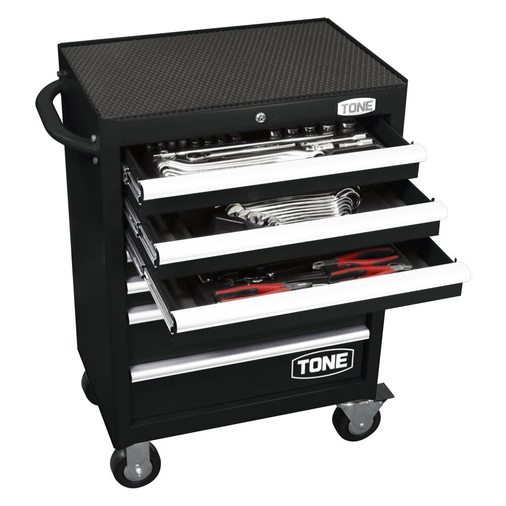 Bộ dụng cụ TCS411BK TONE là bộ dụng cụ di động có kích thước 676mm x 459mm x 1015mm và khối lượng 75.4kg, phù hợp cho việc lưu trữ và di chuyển dụng cụ trong xưởng cơ khí. Bộ dụng cụ TCS411BK TONE có tải trọng tổng khi đứng yên đạt 6860N (700kgf), đáp ứng nhu cầu của thợ cơ khí và kỹ sư bảo trì cần một giải pháp lưu trữ chắc chắn.