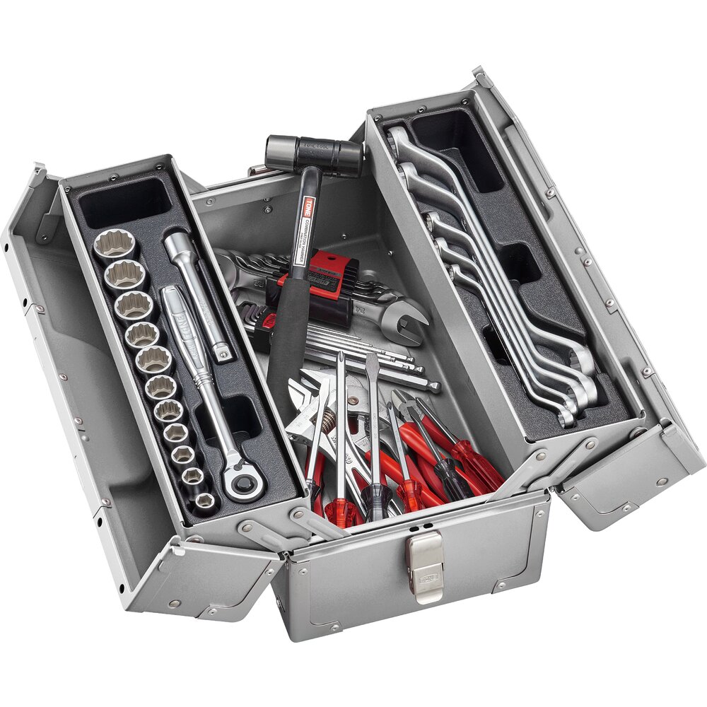 - Bộ dụng cụ TSS460SV TONE có khối lượng 11000g và kích thước hộp 433mm x 220mm x 240mm, thuận tiện cho kỹ sư bảo trì di chuyển và cất giữ trong không gian làm việc hạn chế của xưởng gia công.