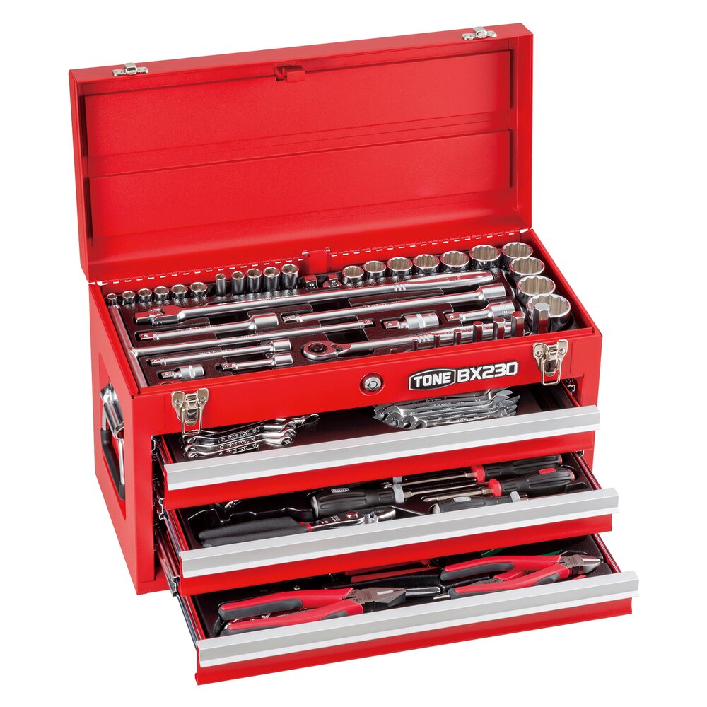 Bộ dụng cụ TSX950 TONE có kích thước đầu vào 9.5mm(3/8inch) và 12.7mm(1/2inch), với tổng số 86 chi tiết trong bộ, hỗ trợ đa dạng công việc tháo lắp. Bộ dụng cụ TSX950 TONE có kích thước sản phẩm đơn lẻ là 508mm rộng x 232mm sâu x 302mm cao, phù hợp để lưu trữ trong tủ dụng cụ tại xưởng cơ khí hoặc nhà máy.