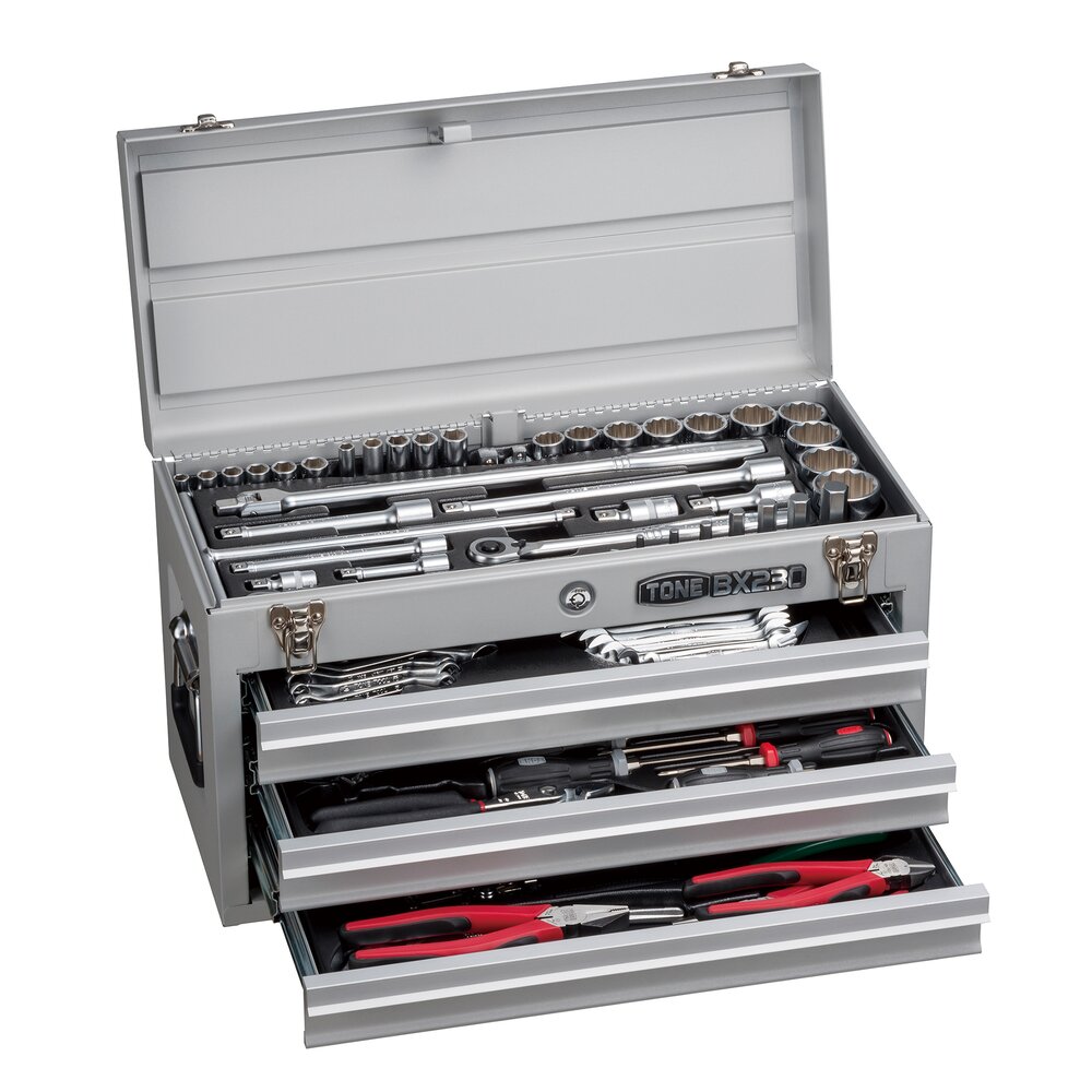 Bộ dụng cụ TSX950SV TONE là bộ dụng cụ cầm tay chuyên nghiệp có kích thước đầu vào 9.5mm và 12.7mm, phù hợp cho công việc bảo trì và lắp đặt trong các nhà máy công nghiệp. Bộ dụng cụ TSX950SV TONE có tổng cộng 86 chi tiết trong hộp, khối lượng 22500g, đáp ứng nhu cầu của kỹ sư bảo trì và thợ cơ khí cần bộ dụng cụ đầy đủ, tiêu chuẩn.