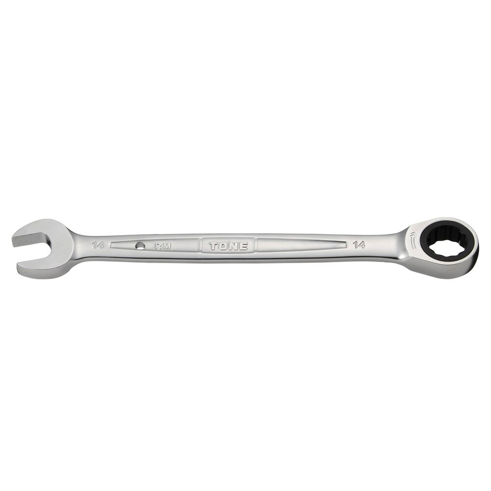Cờ lê cơ cấu ratchet RM-14 TONE có đầu 12 cạnh kích thước 14mm, khối lượng 100g, dài 190mm, phù hợp cho bảo trì máy móc trong nhà máy KCN.
