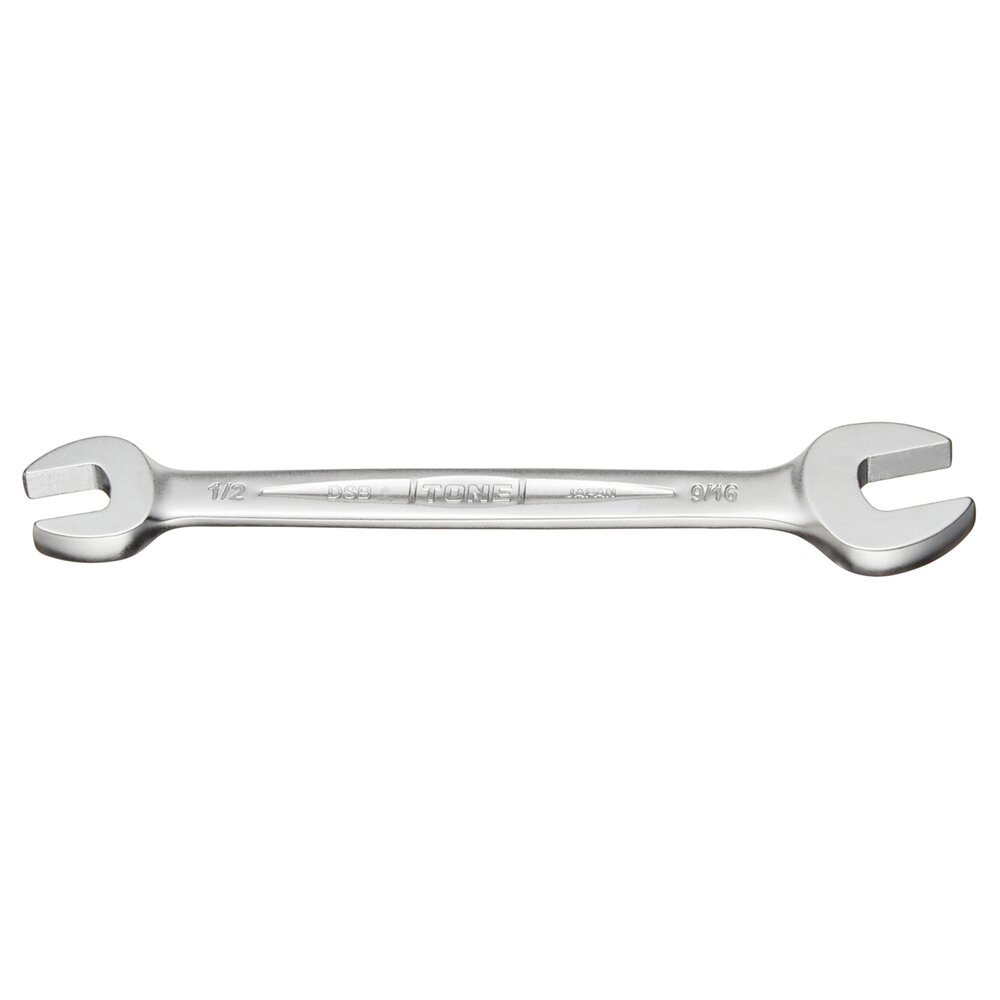 Cờ lê DSB-1618 TONE có đầu cờ lê kép với khẩu độ 1/2 × 9/16 inch, chất liệu thép kết cấu, xử lý bề mặt bóng mờ nhám, khối lượng 113 g, kích thước 179 x 35 x 7 mm, mỗi gói 1 chiếc, mỗi thùng 10 chiếc.