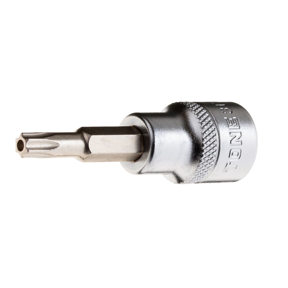 Đầu khẩu bông 3TX-T27H TONE là đầu khẩu Torx chống xoay hình chữ T, kích thước T27H, đầu nối 9.5mm (3/8 inch), khối lượng 35g, phù hợp cho kỹ sư bảo trì nhà máy KCN và thợ cơ khí xưởng khi cần thao tác vặn ốc Torx an toàn trong không gian hẹp.