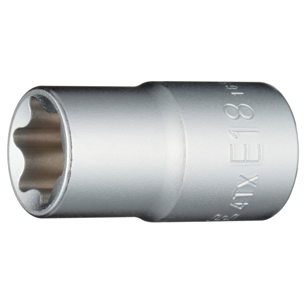 Đầu khẩu bông 4TX-E18 TONE có đầu dạng Torx loại E, kích thước E18, phù hợp với bu lông Torx có đĩa hãm, thường dùng trong ngành ô tô và máy móc công nghiệp.