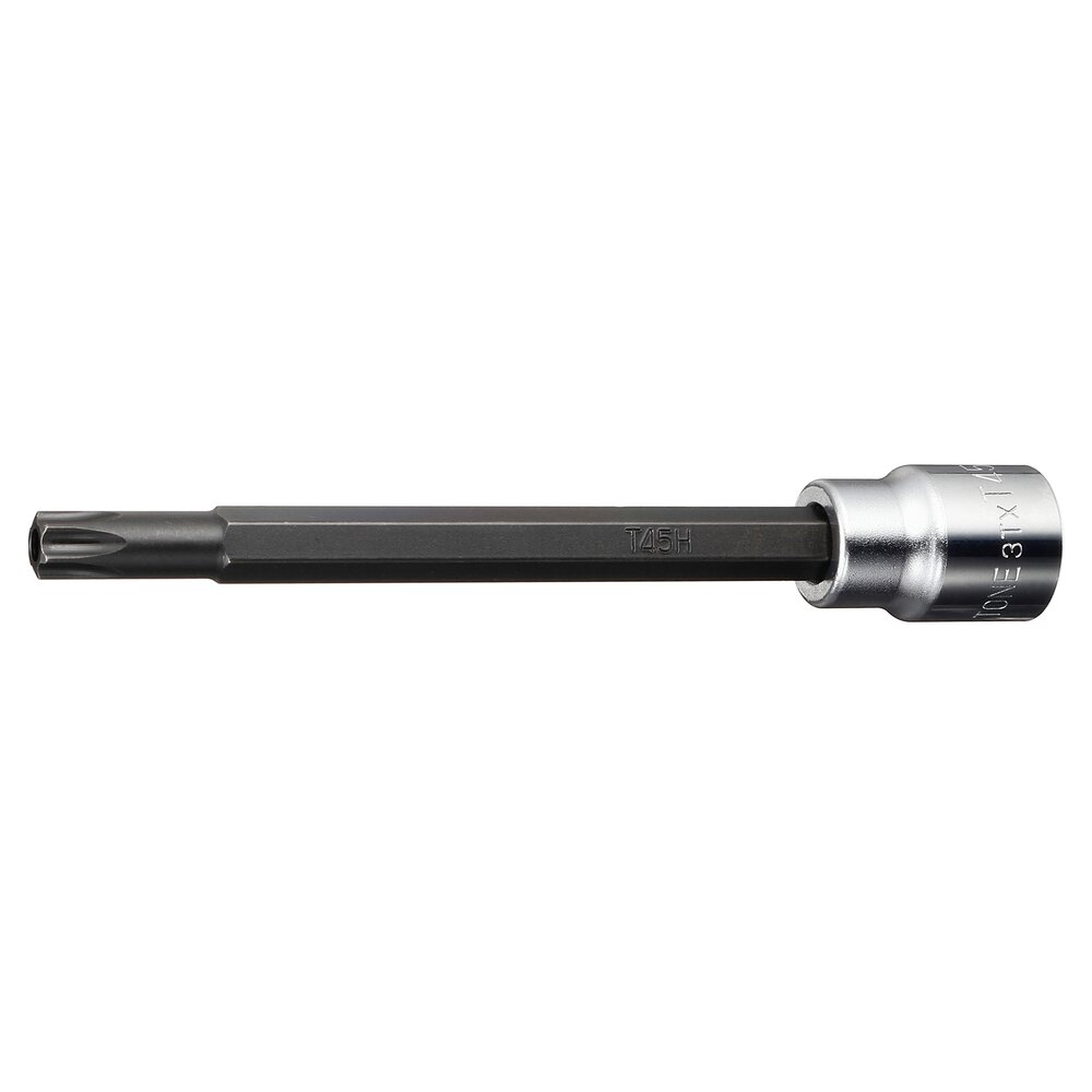 Đầu khẩu bông dài 3TX-T45HL TONE có đầu nối 9.5mm (3/8 inch), hình dạng đầu torx chống xoay chữ T, kích thước T45H, chất liệu thép kết cấu, khối lượng 90g, kích thước 19x19x125 mm, đóng gói 1 chiếc, thùng nhỏ 10 chiếc, thùng trưng bày 6 chiếc.