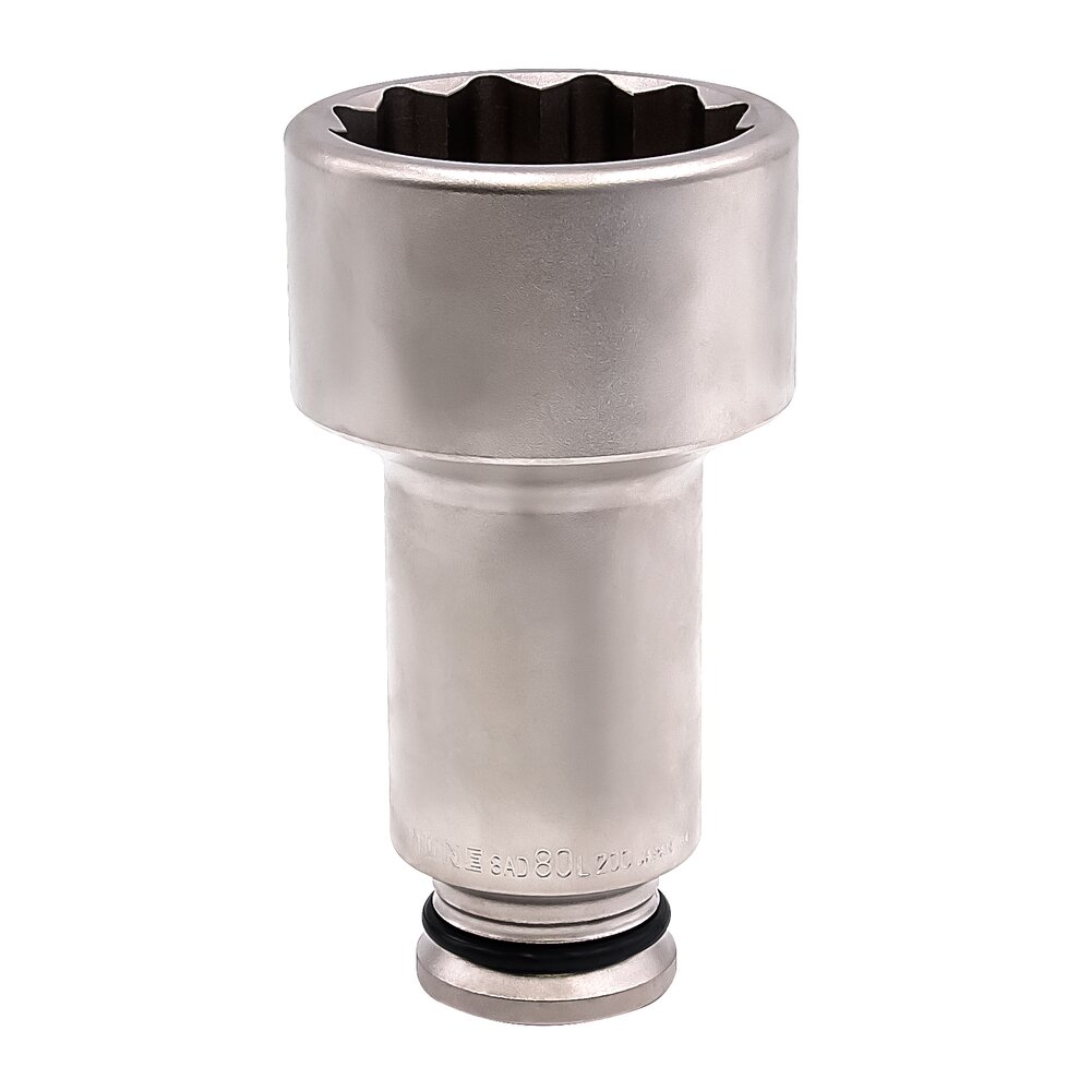 Đầu khẩu dài 8AD-75L200 TONE có góc lắp 25.4mm, đầu 12 cạnh với chiều rộng hai mặt 75mm và được làm từ thép kết cấu, phù hợp cho việc bảo trì máy móc trong các nhà máy khu công nghiệp tại khu vực như Đồng Nai hoặc Bình Dương nơi cần dụng cụ bền bỉ.
