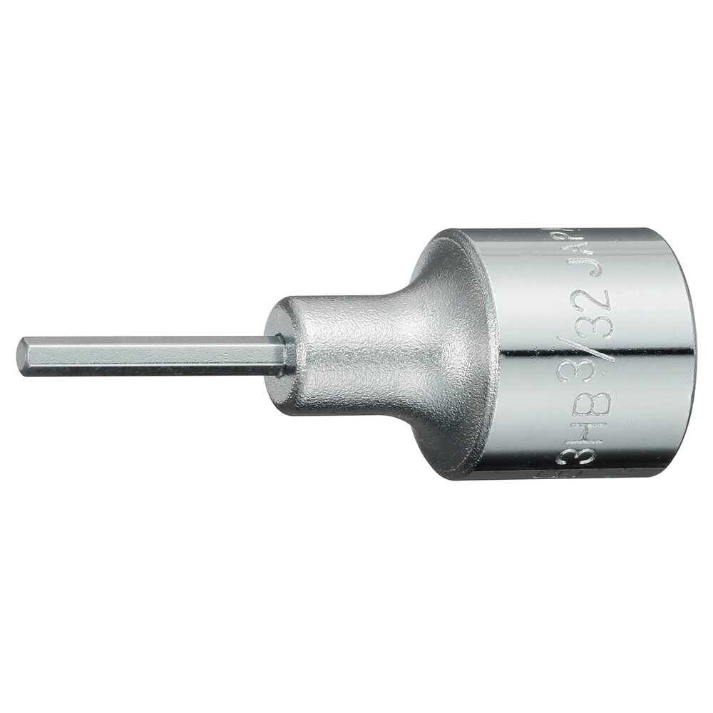 Đầu khẩu lục giác 3HB-03 TONE có góc cắm 9.5mm (3/8 inch), đầu lục giác với chiều rộng hai mặt 3/32 inch, chất liệu thép kết cấu, khối lượng 18g, kích thước (rộng x sâu x cao) 17x17x45 mm, đóng gói 10 cái/hộp nhỏ.