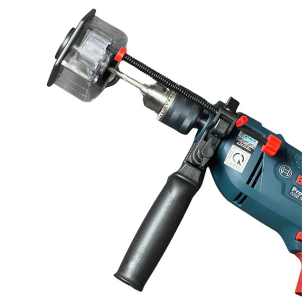- An toàn trong quá trình sử dụng – Phần nắp trong suốt giúp theo dõi tiến độ khoan mà không cần dừng máy, đồng thời bảo vệ mắt và hô hấp khỏi bụi độc hại. Thiết kế này tuân thủ các tiêu chuẩn an toàn châu Âu, giảm nguy cơ hít phải silica từ bê tông.