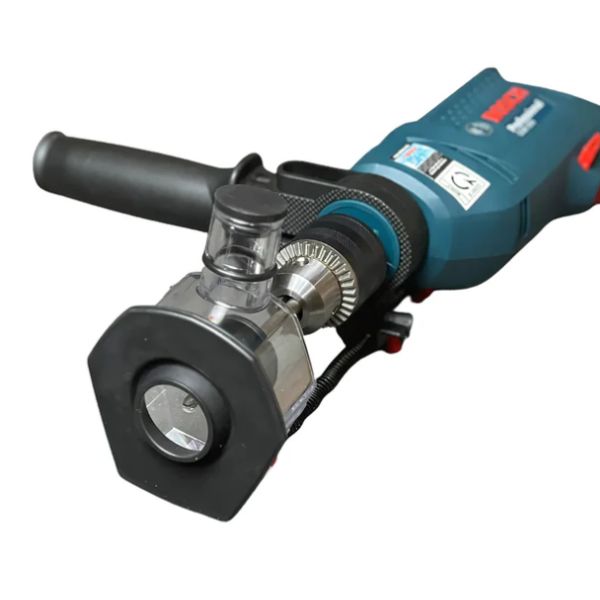 - Kết nối hút bụi (tùy chọn): Nếu muốn tăng hiệu quả, gắn ống hút bụi vào lỗ kết nối phía sau GDE 24. Đảm bảo ống khớp với đường kính tiêu chuẩn của máy hút bụi Bosch.