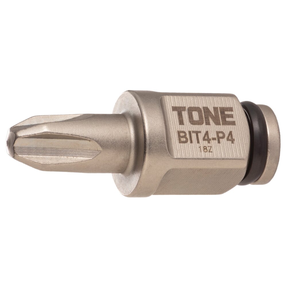 Đầu vặn kiểu tô vít BIT4-P4 TONE có góc cắm 12.7mm (1/2 inch), phù hợp với nhiều loại tay vặn khác nhau.