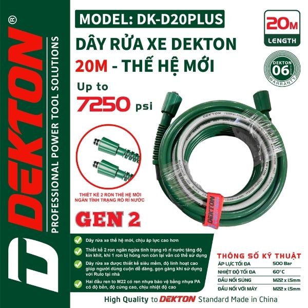Review Dây rửa xe áp lực Dekton DK-D20PLUS (20 mét)