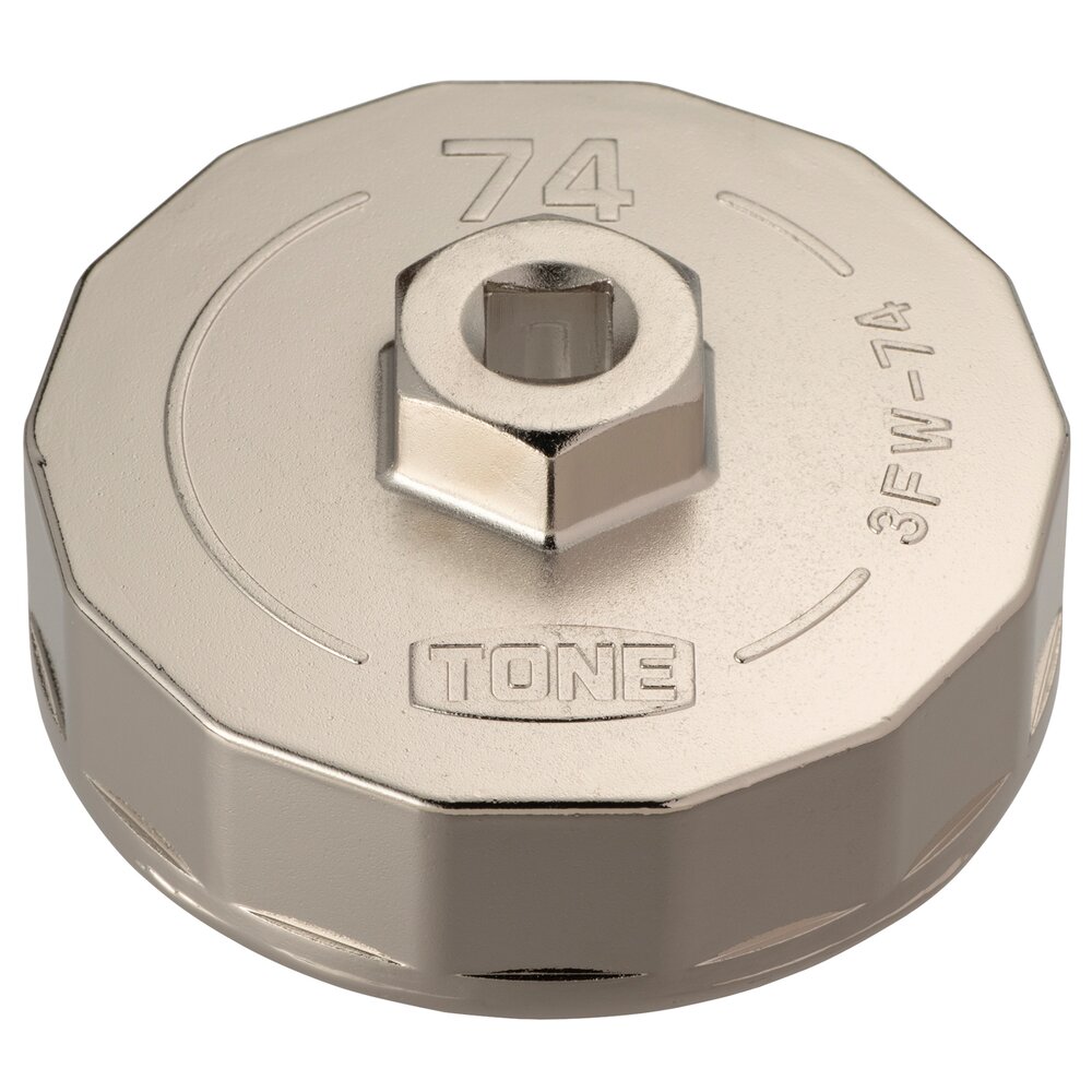 Dụng cụ tháo cảo lọc dầu 3FW-74 TONE có kích thước tiêu chuẩn đầu 74mm, phù hợp với lọc dầu cỡ lớn.