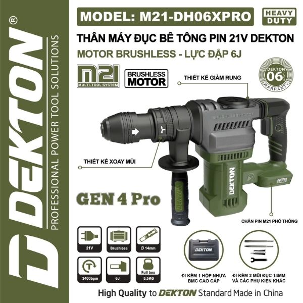 Review Máy đục bê tông pin 21V Dekton M21-DH06XPRO