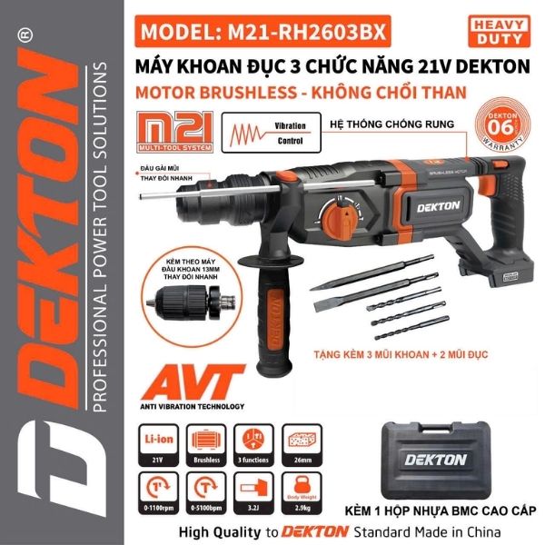 Review Máy khoan bê tông 3 chức năng Dekton M21-RH2603BX (Chưa Pin & Sạc)