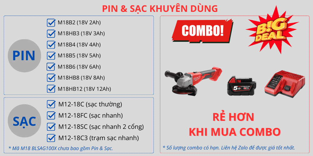 MÁY + PIN M18B5 5Ah + SẠC M12-18C chỉ: 4.699.000đ