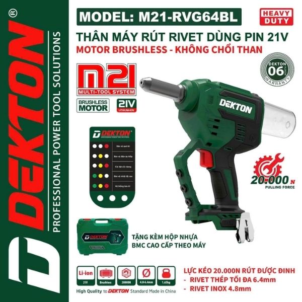 Review Máy rút rive dùng pin 21V Dekton M21-RVG64BL (Chưa Pin & Sạc)