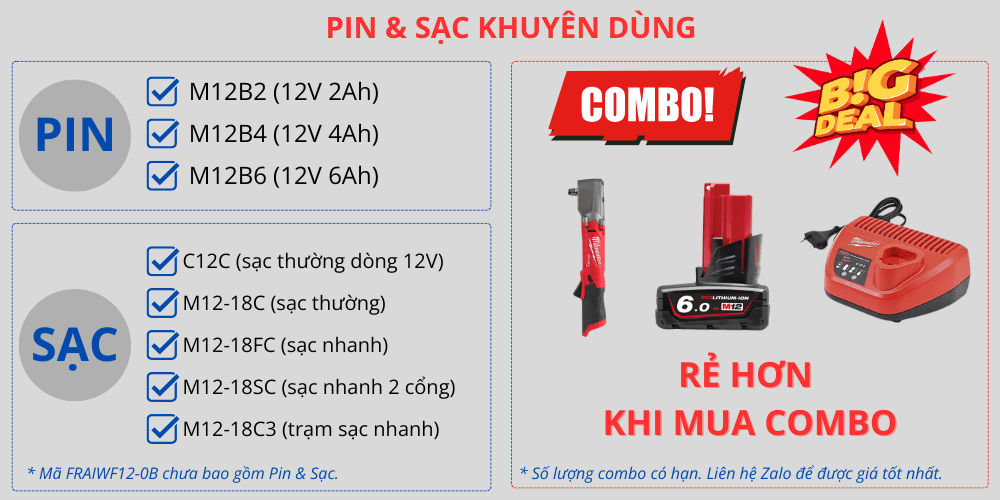 Milwaukee M12 FRAIWF12-0B dùng pin sạc gì?