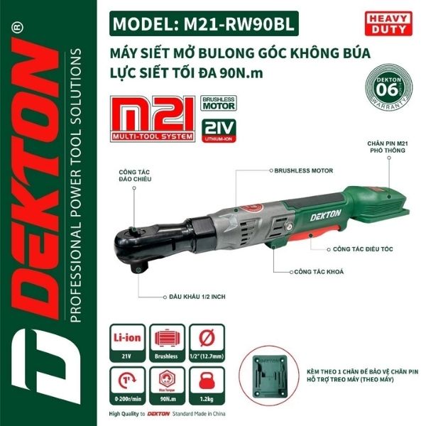 Review Máy siết bu lông góc dùng pin Dekton M21-RW90BL