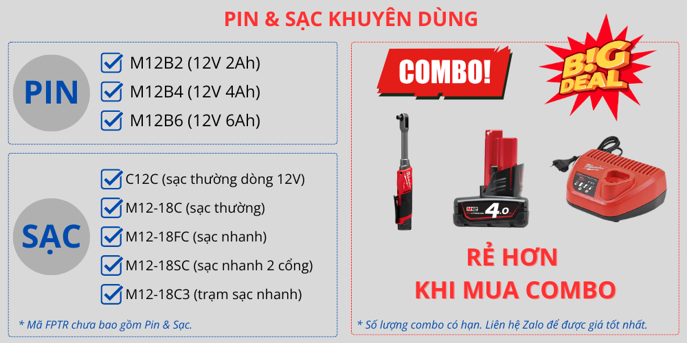 Milwaukee M12 FPTR dùng pin sạc gì?
