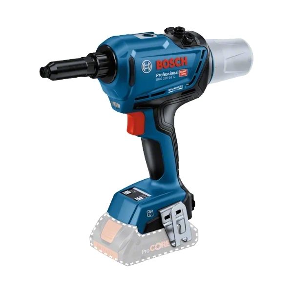 Bosch GRG 18V-16 C là một trong những công cụ đột phá trong dòng sản phẩm dụng cụ cầm tay chuyên nghiệp của Bosch, được thiết kế dành riêng cho việc bắn đinh tán mù với hiệu suất cao và tính di động vượt trội. Là một súng bắn đinh tán dùng pin 18V, sản phẩm này mang lại sự tiện lợi cho các thợ chuyên nghiệp trong nhiều lĩnh vực. Với lực kéo lên đến 16.000 N, Bosch GRG 18V-16 C có khả năng xử lý các loại đinh tán từ 3.0 mm – 6.4 mm đường kính, phù hợp với mọi chất liệu từ nhôm, thép đến inox.