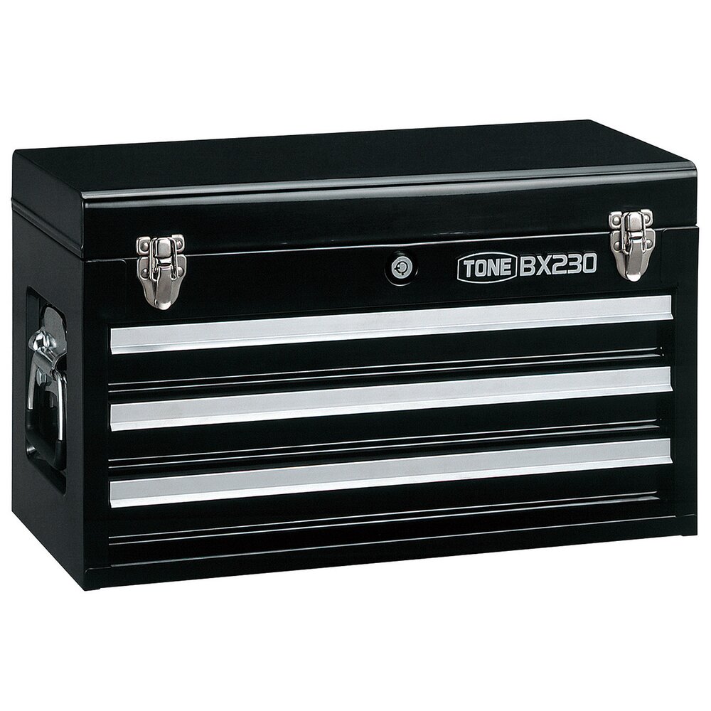 Thùng dụng cụ BX230BK TONE với tải trọng 294N(30kgf) và chất liệu thép, chủ yếu phù hợp cho thợ cơ khí, kỹ sư bảo trì và nhân viên thu mua công nghiệp làm việc trong nhà máy.